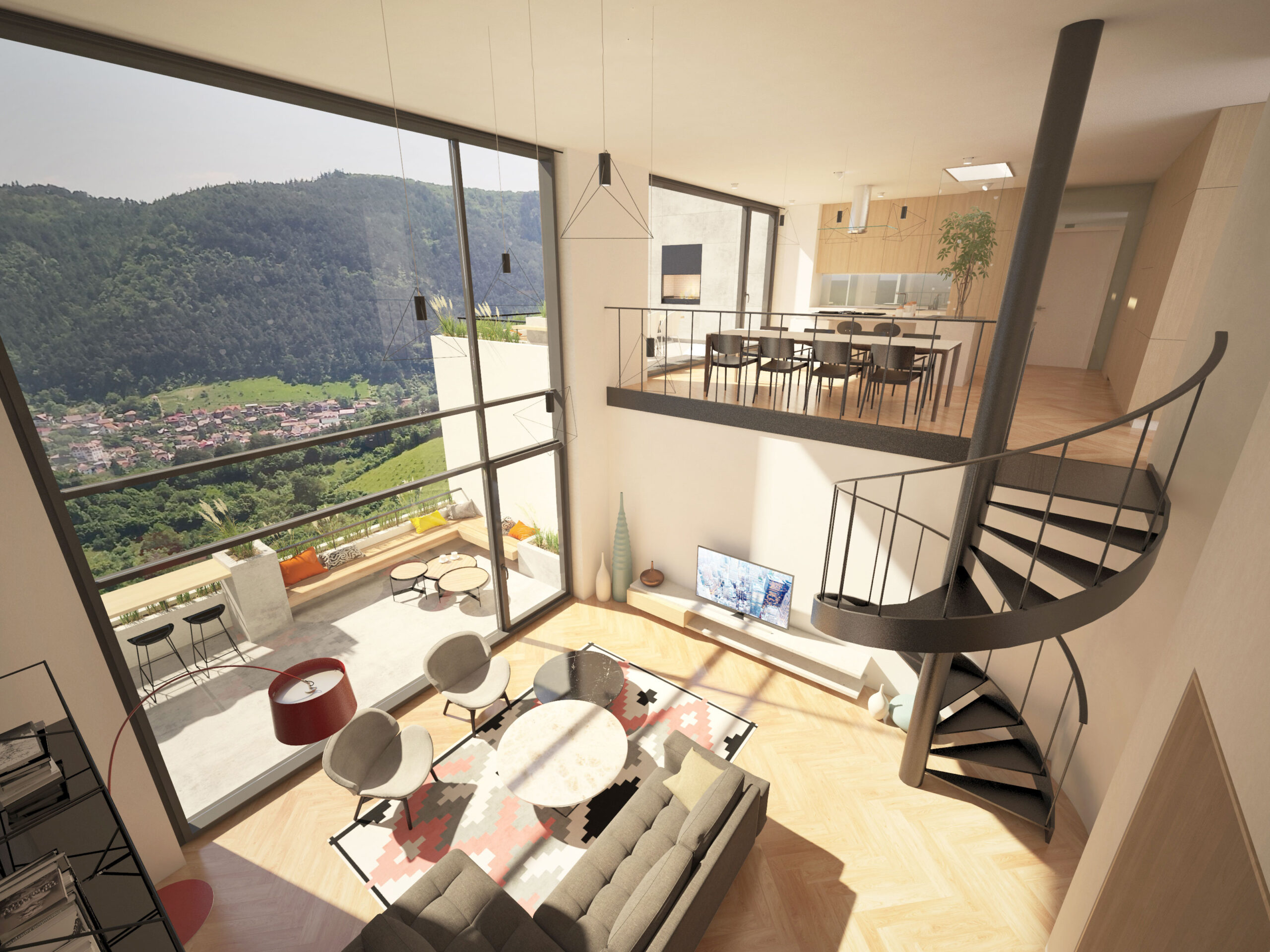Stejeriș is a luxury residential compound developed by Redesign Real Estate ( https://stejeris.ro ).  For completing the Stejeris project there were several design offices and free lancers involved: Redesign, NEAT architecture, Right Angle,  B-Archa, Eastern Works, Sergiu Tencariu, Razvan Andrei. The project is situated on the hills of Brasov.  On one side this is one of the major attractions of the project.  On the other side steep terrain was the main challenge of the project. The project contains 81 apartments in 8 buildings, some of them with spectacular design.